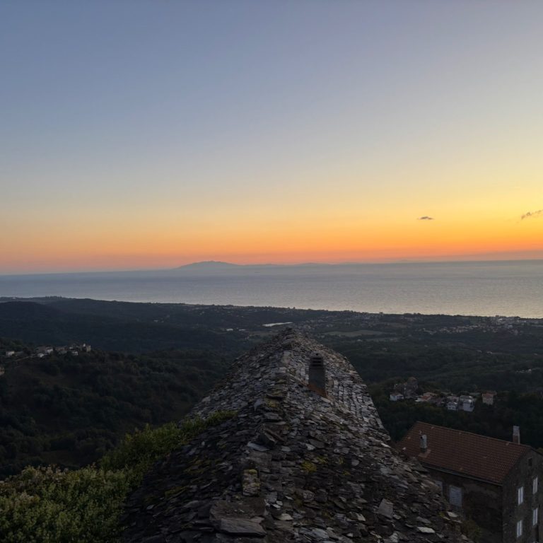 Un environnement créatif avec une vue sur la mer et la montagne. Le studio du luthier est installé dans un minuscule hameau, ne comptant que six maison. Il est au cœur du maquis Corse, régulièrement fréquenté par toute la faune de la nature restée encore sauvage. Parfois embrumé, souvent ensoleillé, nous nous trouvons en tête à tête avec les îles d’Elbe, de Montecristo, et de Kapraï. Par temps clair, nous pouvons apercevoir les côtes italiennes, et notamment la Toscane.